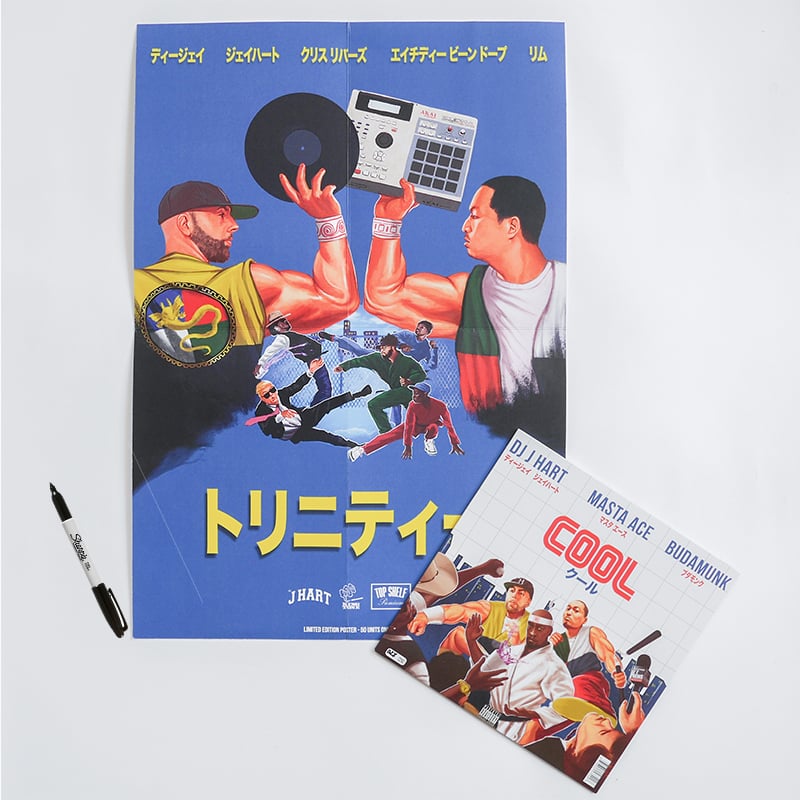 - A 7 inch limited edition collector vinyl, hand numbered with 2 exclusive songs: ‘Trinity’ produced by DJ J Hart featuring Chris Rivers, HDBeenDope, Rim (Side A) and ‘Cool’ feat. Masta Ace and DJ J Hart produced by Budamunk (Side B).